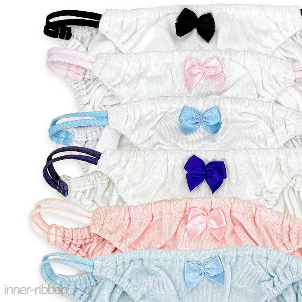 通気性が良く肌に優しいコットン100%♪脇2本ゴムひもとリボンが可愛い浅めスキャンティです。