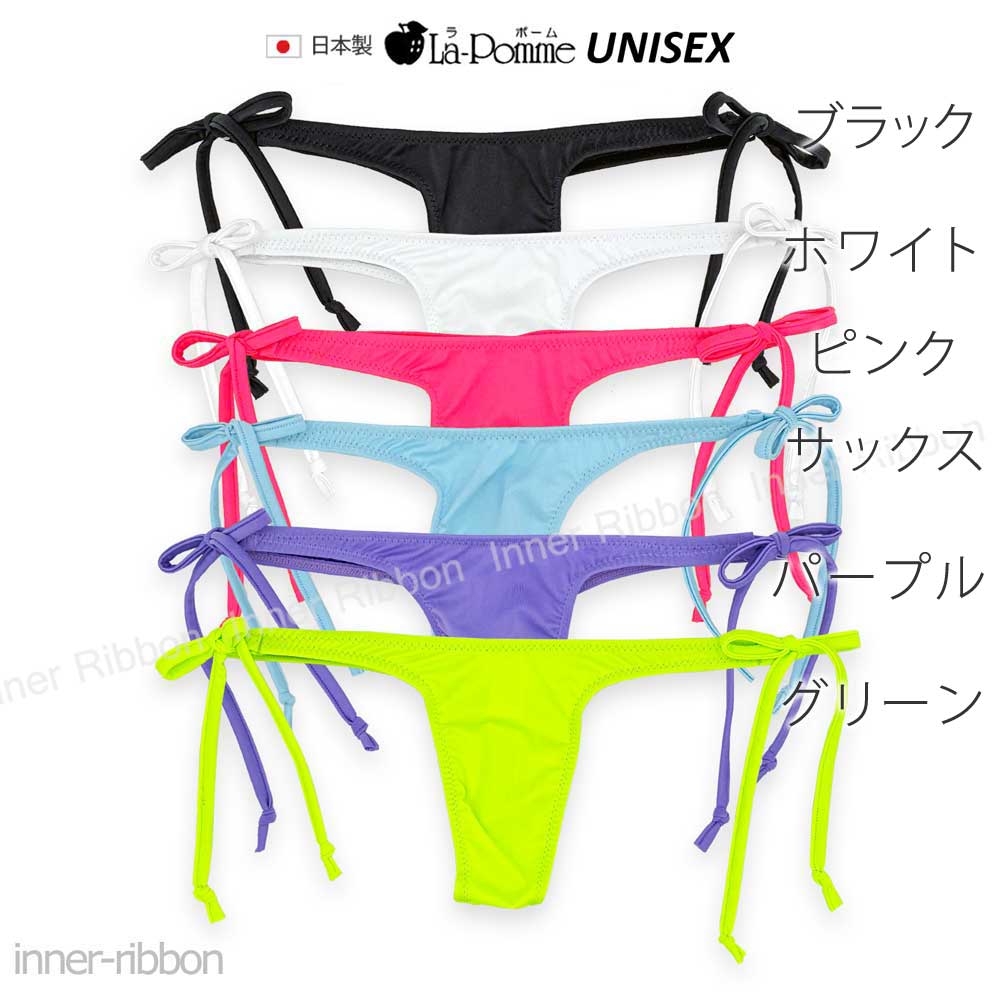日本製 ユニセックス サイドリボン Tバック パンツ ショーツ 2way ストレッチ ハリ E6000 生地 M 男女兼用 UNISEX La-Pomme(ラポーム ラ・ポーム) 722030