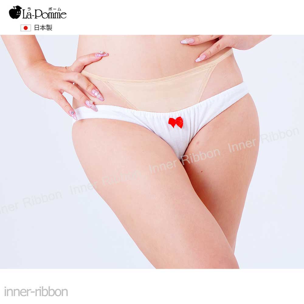 日本製 セクシー ショーツ スキャンティ 浅め ローライズ レッドリボン スキャンティ 綿 コットン 100% インゴム フルバック La-Pomme(ラポーム ラ・ポーム) 116042