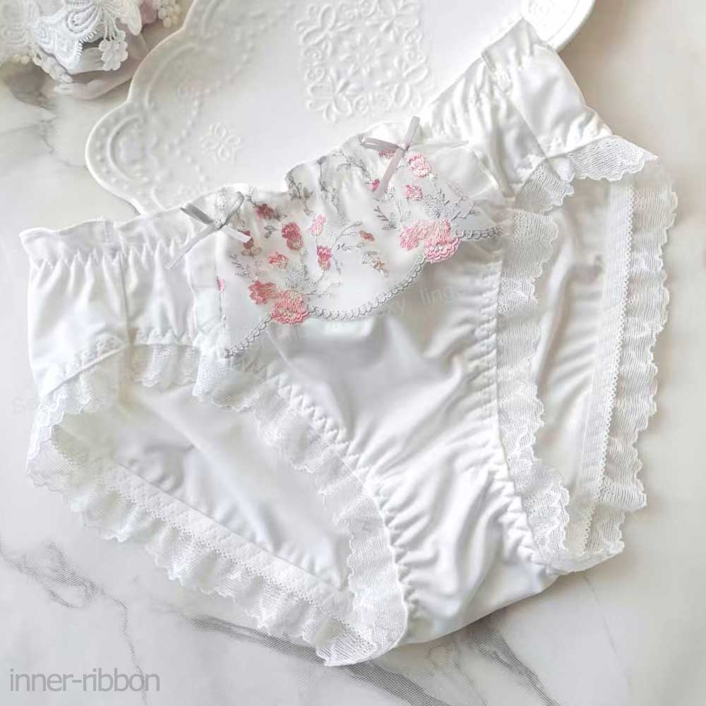 下着 ショーツ ランジェリー 脚ぐりフリル フラワーレース リボン フルバック レディース 女性 女子 可愛い セクシー M L LL 3L サイズ RB067