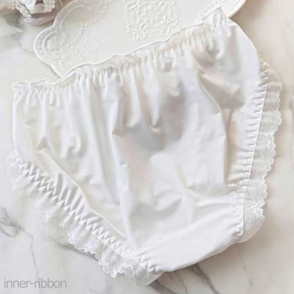 女性らしさを引き立てるデザインが魅力です。レースと脚ぐりフリルが優雅さを演出し、両サイドのリボンが可愛らしさを添えています。フルバックスタイルで、しっかりとヒップを包み込みます。Mから3Lまでのサイズ展開で、幅広い体型に対応。学生から大人の女性まで、日常使いにぴったりの一枚です。