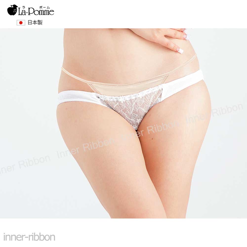 日本製 セクシー ショーツ スキャンティ 浅め ローライズ スキャンティ センター レース コットン 100% インゴム フルバック La-Pomme(ラポーム ラ・ポーム) 117091